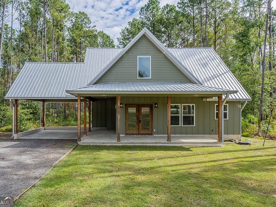 Electric fireplaceDouble carportExpansive islandFront porchCustom built-insMetal roofBarn doors