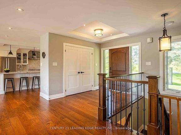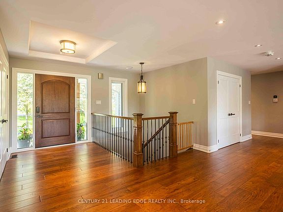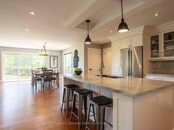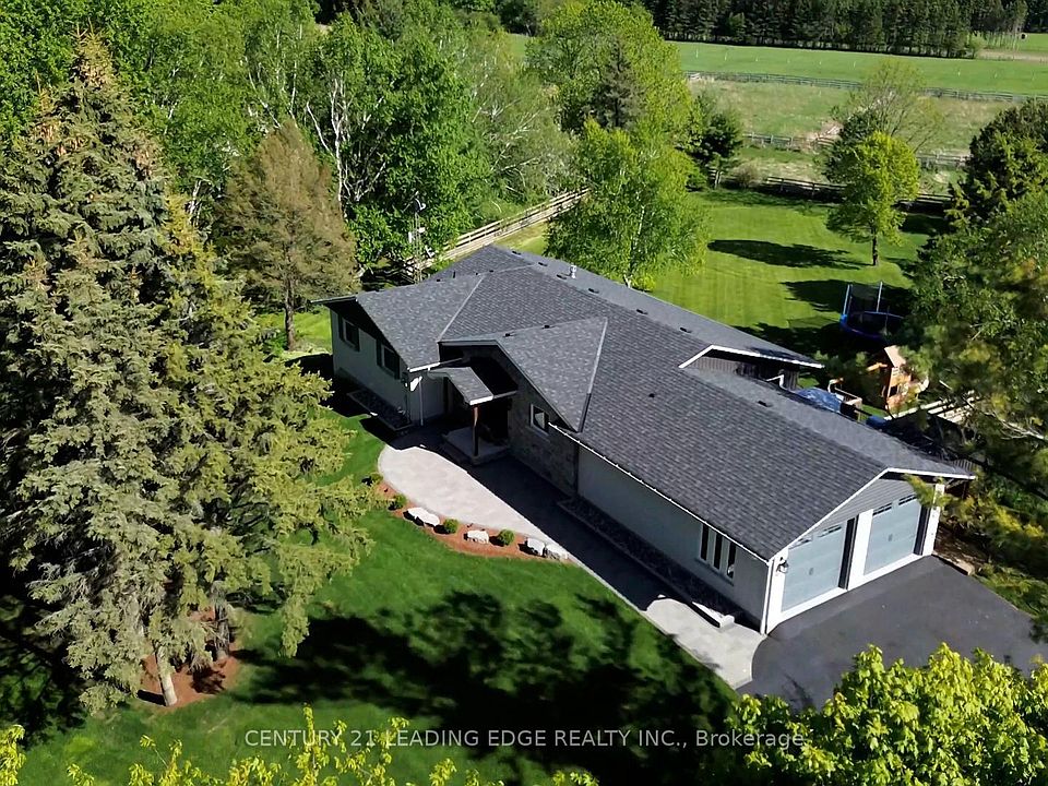 Experience the charm of this fully customized raised bungalow country estate, thoughtfully designed for luxurious and comfortable living. Featuring 3+2 bedrooms and 3 full bathrooms, this home offers an open-concept main floor with beautiful hickory flooring throughout. The gourmet kitchen boasts built-in luxury appliances, granite countertops, and a large pantry. The family and dining rooms open onto an extra-large deck that overlooks peaceful natural surroundings, creating the perfect space for relaxing and entertaining. Step outside to enjoy a fully landscaped property set on over 1 acre of serene land, complete with an extra-large fire pit, a spacious shed, and ample play area in the backyard ideal for family fun and outdoor gatherings. The massive two-car garage is fully epoxied and insulated, complemented by an attached heated third garage with a workshop, available for year-round use perfect for car enthusiasts or craftsmen seeking dedicated workspace. Additional upgrades include a state-of-the-art water system, high-efficiency windows, and enhanced insulation, ensuring comfort and energy efficiency year-round. The lower level features a private two-bedroom in-law suite with its own kitchen, laundry, and bathroom, offering excellent flexibility for extended family or rental income. Located just 5 minutes from the town of Brooklin, this exceptional country estate combines tranquil country living with convenient access to local amenities, making it the perfect family retreat or hobbyists haven.