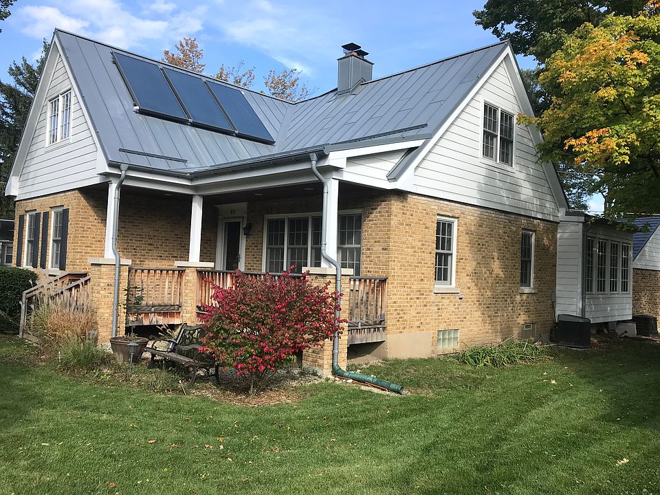 Expansive, recently renovated & totally updated 4 bed /3 bath wonderful Chicago brick Cape Cod on a lg corner lot w/a great front covered porch & rear wood deck w/a detached 2 3/4 car garage + large side yard. Upon entering, you are greeted by a gracious wood parquet foyer, formal living room w/a wood burning fireplace flowing into an open dining room that flows into a newer kitchen w/SS appliances+breakfast bar. 4 seasons sun room features sliders off the mud room. 1st floor bedroom doubles as a home office w/a full bath. Upstairs features a large Master bedroom w/a new full, private bath. 2 add'l spacious bedrooms share a newer hall bath. Downstairs in the LL is a large Cedar closet for off season clothes & gear, a large rec room, laundry, office and giant mechanical/storage room. A few unique amenities include hardwood floors thru-out, a newer Zinc roof, solar thermal panels for hot water assistance, This is the house you have been waiting for in the heart of Deerfield.