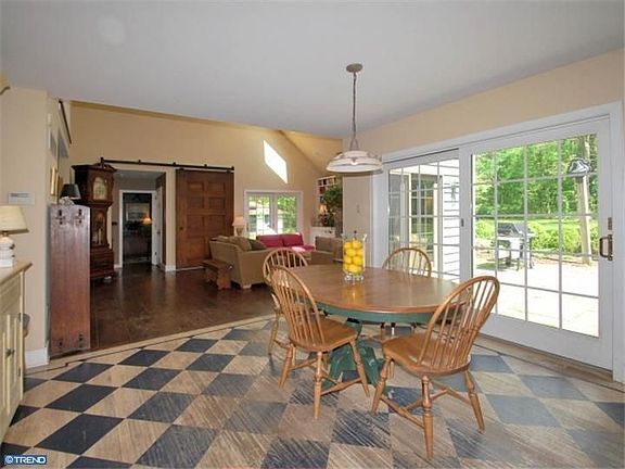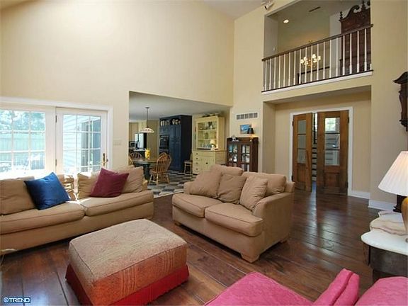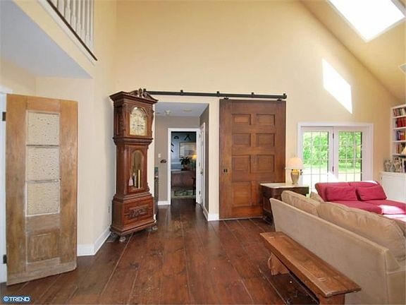 An extended tree lined driveway welcomes you to this custom-built home,privately situated on 2.5 acres. Beveled wide-plank flrs, french-glassed carriage drs and original barn door set the scene for this unique home. Vaulted ceiling and skylights create an open floor plan that continues through sliding glass doors to a slate patio overlooking the expansive private backyard.The kitchen hosts custom furniture-like cabinetry, double oven, stainless fridge,dishwasher and 5 burner gas stove. The first floor has plenty of room to spread out with sep.office, formal DR, LR, PR, wet bar, laundry/ mudrm and lg FR wired for surround sound. The basement has been finished w/ a bedroom and bathroom w/ shower. The second floor has a balcony overlooking the GR which separates the three bedrooms and full bath from the master suite. The MBR has two w/i closets,cath.ceiling,lge bath w/shower,dble sink,tub& beautiful views. Walk to schools, trails and minutes to train and shops. Click on camera icon for tour.
