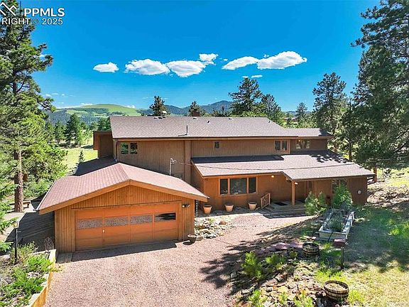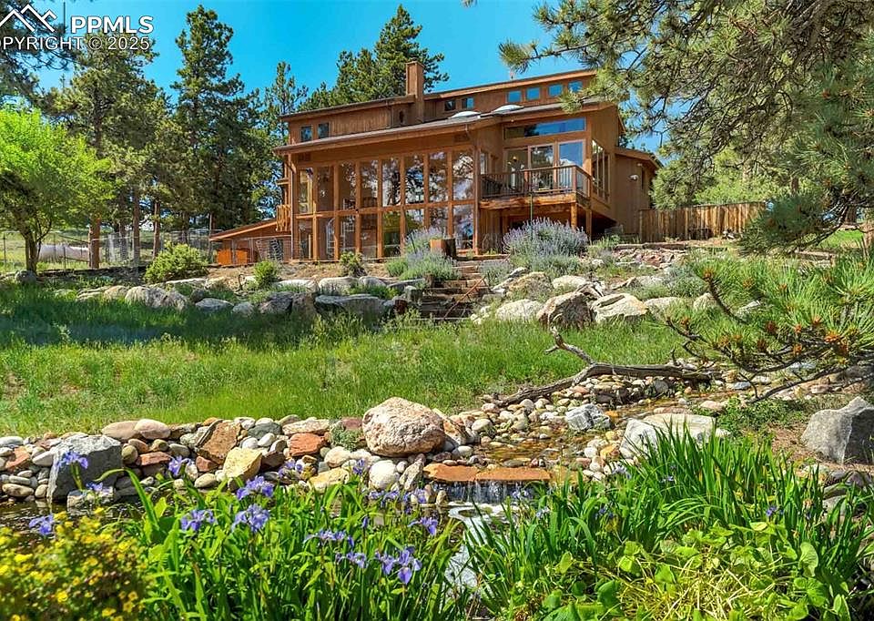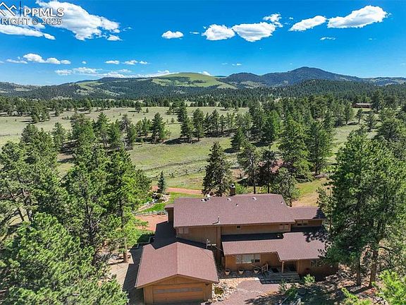Behold the best of Colorado mountain living with this extraordinary 5-bedroom, 3.5-bath passive-solar home on nearly 70 acres in the desirable Pike Trails Ranch near Guffey! Surrounded by stately ponderosa pines, this thoughtfully designed custom retreat blends character and functionality across open living areas and flexible guest space. Originally built in the 1980s, the residence marries timeless quality with essential updates, including a new roof and furnace. Inside, hardwood floors, vaulted tongue-and-groove ceilings and skylights flood every room with natural light and warmth. The chef’s kitchen is both functional and inviting, featuring granite countertops, wood cabinetry, double wall ovens, a breakfast bar and center island for daily meals or entertaining. The primary suite offers a skylit walk-in closet and a private balcony among the trees, while a standalone studio with loft and private entry makes an ideal guest quarters or creative hideaway. A dramatic two-story sun space supplies passive heat and doubles as a year-round greenhouse with sweeping meadow views, perfect for winter gardening or peaceful reflection. The unfinished walk-out basement, once a pottery studio, features two 250-gallon cisterns, gas hookups, 220-volt power, ventilation and drains for future use. Step outside to expansive decking and landscaped beds framing a recycled stream and pond where elk and deer roam freely amid the shade of mature trees and open clearings that invite stargazing, gardening or future expansion. A domestic well supports livestock and irrigation for up to an acre, and the three-stall barn includes automated heated waterers, fenced corrals and pasture ready for horses or hobby farming. With no covenants, low POA dues and just two miles from CO-9, this estate provides effortless access to Guffey, Cañon City, Cripple Creek, Salida and Breckenridge. Wake up each day to breathtaking alpine sunrises, crisp pine-scented air and the mountain lifestyle of your dreams!