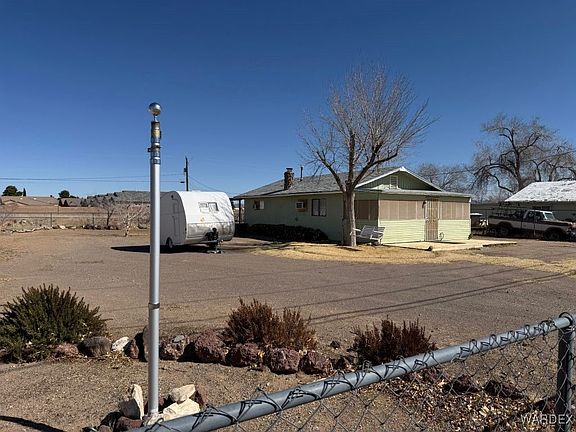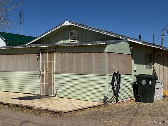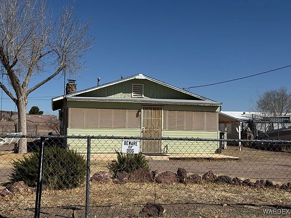 Charming Bungalow with Studio Apt on Large Fenced Lot!! Built in the 1960s, and just blocks from shopping, the hospital and more, features a unique character with its handmade rock fireplace and cozy kitchen with stainless steel refrigerator, with each bedroom having its own window/wall air conditioning units. Some modern upgrades, such as a newer central heating unit, an updated bathroom, a kitchen with ample cabinet space, a laundry room (washer and dryer included), as well as a screened in front porch with large storage closet, make it a comfortable and inviting home. The quaint studio unit in the rear and detached (16x20') from home offers its own private patio and direct access to the spacious backyard. It includes a fully functional kitchenette with a stove, fridge, sink, and microwave. Once serving as an icehouse, it was a popular stop for people in the old Kingmanites to pick up a block of ice for food storage. The lot measures 89x106, is fully fenced, and offers ample room for a garage, workshop, garden, and more! This property is connected to sewer and city water.