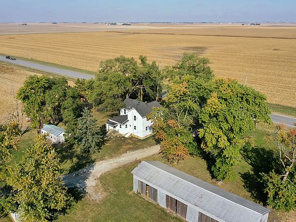 Nestled on the outskirts of Ashkum, IL, not far from Interstate 57, and only a short 20-minute commute to Bradley/Bourbonnias, this beautifully renovated farmhouse sits on a generous 1.5-acre lot. The home combines modern comfort with rustic charm, featuring multiple outbuildings and two decommissioned grain bins ideal for storage or workshop space. Inside, the two-story, three-bedroom, one-bath residence boasts a freshly updated interior. You'll find all-new flooring throughout, an open-concept dining and living area, and a kitchen that blends modern convenience with farmhouse character. The kitchen features brand-new vinyl plank flooring, quartz countertops with an under-mount sink, and all-new stainless steel appliances, while retaining original built-in cabinetry for a touch of timeless charm. The main floor laundry has been conveniently relocated from the basement, and the bathroom has been fully revamped with a new tub, surround, toilet, and vanity. Each upstairs bedroom offers individual radiant heat controls for personalized comfort, while the main floor is equipped with forced air heating. With updated plumbing and electrical systems, this home is truly move-in ready and waiting for you to make it your own.