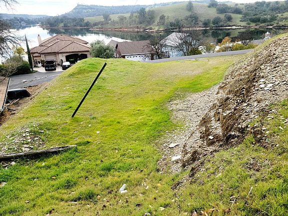 Front and Center lake views from this lot directly across the street from water frontage. Walking distance to docks, launch and several small parks with picnic tables. This lot is in Lake Tulloch Shores gated community, where residents driving golf carts roam about the subdivision to take advantage of the lake front amenities. If you have a vision for a lake house, this could be the lot to build on. Corners have been marked by a surveyor and seller has plans for a 1500+ sq.ft home 3 bed 2 bath with garage which will convey with the purchase of the property. Copperopolis is about an hour commute to the central valley