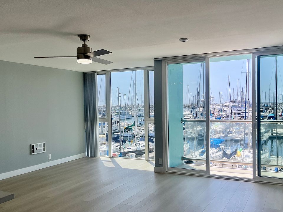 Move-in Ready! This newly remodeled unit has one bedroom and one bath. It has spectacular unobstructed views of the Marina and Pacific Ocean. Private balcony, stainless steel appliances, LED mirrors, and quartz countertops. Leases start at 6 months. Secured entry, leasehold security 24/7. Access to year-round heated pool and Jacuzzi. Smoke-free building, cat-friendly units. A short walk to the Bay Club fitness center, the beach and the Strand. Please call the leasing office to schedule a viewing or visit our website for a virtual tour of this unit and additional leasehold information. 6 months to 1 year
