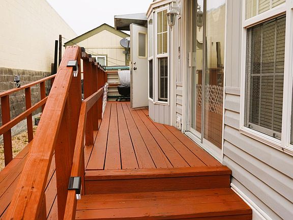 Welcome to this very clean and exceptionally managed 55+ community in Seaside, walking distance to grocery stores, pharmacies, restaurants. 1 Mile to the Beach & recreational trails. Enjoy the extra privacy and calm this end unit offers as you soak in the fresh ocean air. The ramp allows for easy access into the home. The built in office area partitions off to create privacy or allows for a potential second bedroom/guest sleeping area. Updated shower, new roof in 2022, new A/C unit. Gas Stove and Convection Microwave Oven. The space rent is currenlty $587 and includes water, garbage & sewer. The is an unbeatable value to enjoy the crisp ocean air year round.