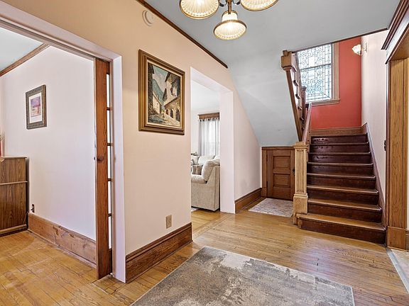Looking for old world charm with modern conveniences? This Cathedral Hill Victorian home sits on a quiet block just four blocks north of Grand Ave. This home offers convenient nearby parks, restaurants, a language immersion daycare and K-12 schools. The main entrance off the wrap-around porch leads to the 1st floor dining area, family room, kitchen w/island, another multi-purpose room and bathroom with walk-in shower. The 2nd floor hosts 4 large bedrooms, another bdrm/office and full bath. The 3rd floor suite can be used as a main bedroom suite or multi-purpose area with 3/4 bath. Plenty of natural light throughout the house east, west and south. Basement has a large recreation area, 3/4 bath, bedroom and laundry with new washer and dryer. The basement is also accessible from a separate entrance that also accesses the kitchen. The back entrance leads to large deck that has a handicap ramp access. Also there is a 1.5-car detached garage.
