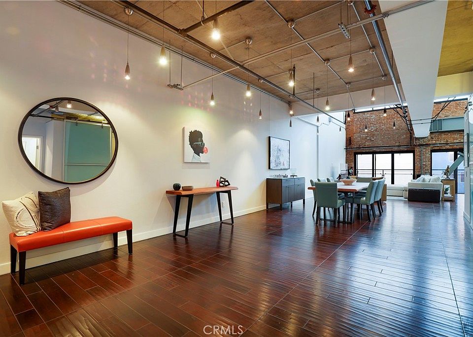 Stunning 2 bedroom Temple Lofts condo! Impeccably designed on two levels with high-quality finishes. Features include hardwood floors, trendy, elegant guest bathroom with in-unit laundry. Downstairs guest bedroom can be used as a den or office. Smart, Italian glass light switches bring contemporary elegance and convenience and contrast well with 1920's original brick accents. Kitchen with custom wood cabinetry, black granite countertops, and Viking stainless steel appliances. Mezzanine level primary suite includes lounge area, office nook with designer privacy screen, rooms for a workout, a bedroom, and walk-in closet. Luxurious primary bath with glass shower, water closet, and dual sink vanity. Polished concrete floors, designer lighting, central AC & heat, two parking spaces, and private storage unit plus elevator access to both floors complete this stunning luxury unit. Located in DTLB, close to the courthouse, the beach and wonderful dining and entertainment options.