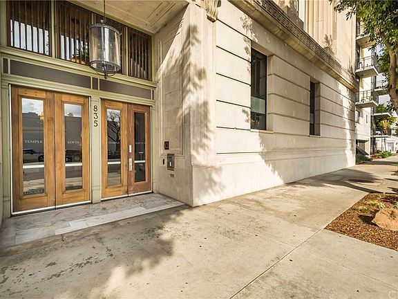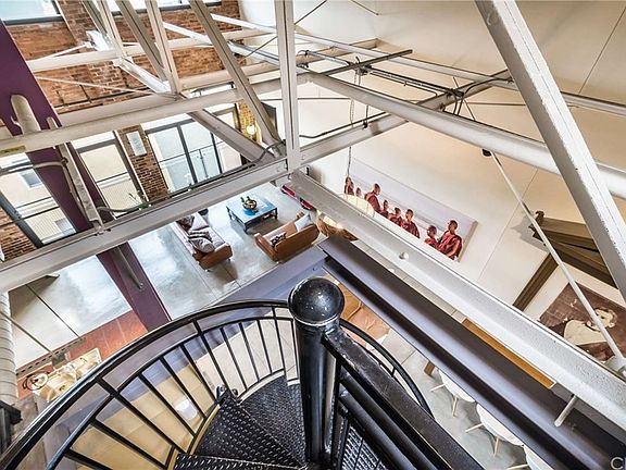Welcome to the Masonic Temple Lofts, a stunning Greek Revival architectural style building built in 1927 and designed by architects Parker O. Wright and Francis H. Gentry; considered to be one of Long Beach's iconic and historical treasures. This is a unique penthouse loft located in the original older building. With over 25 foot, open-beam ceilings and large windows you enjoy spectacular sunset views of the Palos Verdes Peninsula. Open floor plan with polished cement floors, a rare wooden door frame from the original temple ballroom which presently adorns one of the two spacious living areas. The kitchen has been tastefully remodeled with custom quartzite gray countertops and beautiful high-end appliances. Exposed brick brightens and adds warmth to the dining and additional lounge areas. A spiral staircase takes you to the spacious and private master ensuite with double sink vanity and walk-in closet and two full-sized parking spots, both with the ability to hook up electricity are in the covered garage. The Temple Lofts community features gated parking with security, a lounge, spa, exercise room, and BBQ grills. It's a rare opportunity to own this beautiful historic loft perfectly positioned to enjoy many downtown Long Beach activities, trendy restaurants, and shops, as well as to the beach and near access to the freeway!