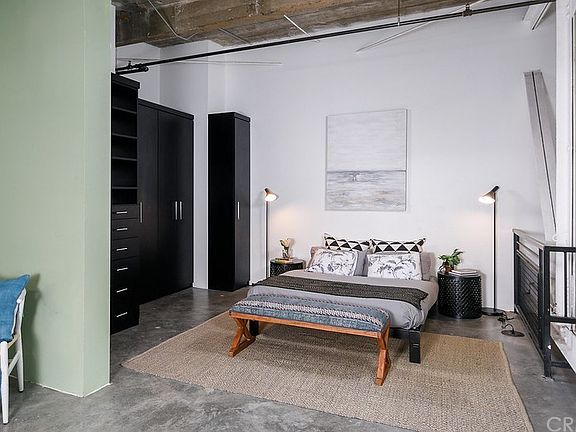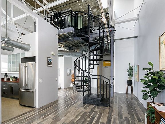 Incredible two-story penthouse level loft in the historic Temple Lofts building! True New York style loft with exposed brick walls, concrete ceilings and beams, open floorplan with 25-foot ceilings, skylights, track lights, pulley for bike storage, and a spiral staircase leading to the 2nd level mezzanine master bedroom retreat. Central AC & heat, stainless steel Viking appliances, two parking spaces, separate storage unit, the upstairs level is plumbed for a second bathroom (currently the unit has one full bath but a new owner can easily add a second bathroom upstairs). The Temple Lofts is one of the best-appointed buildings in Long Beach with gated guest parking, community fitness center, spa, clubhouse, secured resident parking, bike storage, and an onsite building maintenance manager.