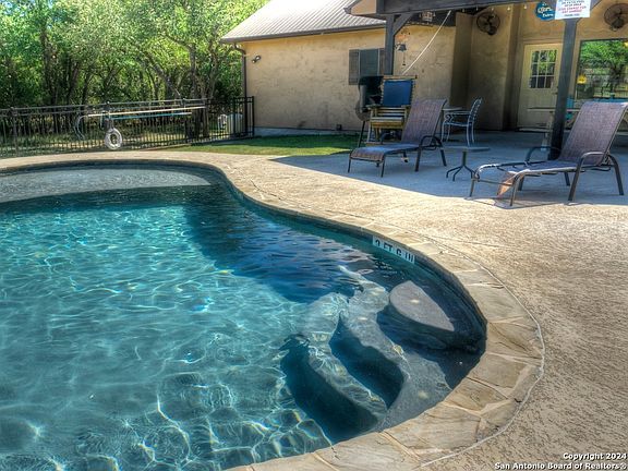 This beautiful hill country four bedroom, four bath fully furnished home can accommodate up to 16 guests and is located in the Concan Country Club gated community. "River Time" is currently in the rental pool and has an established rental history, but it would also make a great full-time home or a vacation home. When you enter the home, you will enjoy the casual rustic feel of the centrally located living/kitchen/dining area designed with entertainment in mind. Each side of the home offers 2 bedrooms each with its own adjoining bathroom providing a comfortable retreat for guests. The expansive back yard is nestled in the oaks and provides a relaxing atmosphere for guests to enjoy the pool with sun shelf, cozy fire pit, outdoor kitchen/cooking area and horseshoe pit. It's the perfect setting for enjoying family gatherings or a quiet evening under the stars. Located between Kenneth Arthur Crossing and 7-Bluff Crossing, you are just minutes from the crystal-clear Frio River for tubing and kayaking, the House Pasture music venue, and everything that Concan, Garner Park and the Frio Canyon area have to offer.