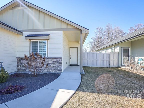 Step inside this perfectly turn key home and immediately notice the warm and inviting feeling. You'll notice the open floor plan that offers a great living space connected into the kitchen that has a subway tile backsplash and granite countertops with a leather finish. There is plenty of storage in the kitchen and a pantry to fill. The lighting fixtures offer another level of warmth as well. The layout of the home is a split floor plan which is popular in newer construction. The home has vinyl plank flooring, the bedrooms have a generous size to them, and the laundry room is completely efficient in every way. One feature outside that is great is the road is quiet and dead ends. Also there are no close neighbors behind you other than maybe a few llamas now and again! The landscaping is clean and cute, the vinyl fencing encloses the back yard, and probably one of the best features is that this townhome, unlike many others, shares the common wall in the garage area. This home is priced to sell, come look ASAP!