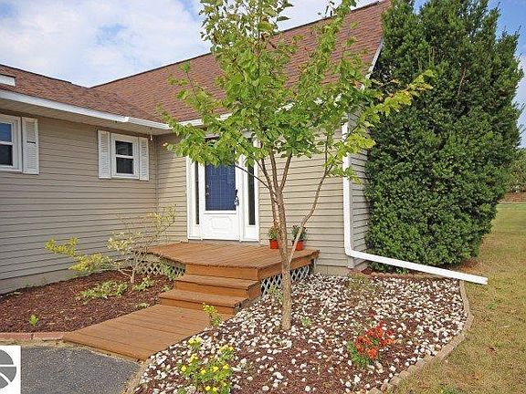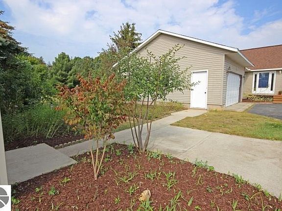 Fabulously Affordable Spacious Ranch Home on 1.4 acres with a 2 car garage PLUS a larger 2nd detached garage and add'l garden shed. New vinyl and carpet flooring and new paint throughout. Nice clean open floor plan with lots of light. Home is well insulated and very quiet inside. Nearby GT Cnty Nature Center. Across from Traverse City Soccer Fields. Full basement partially finished. Lovely landscaped yard.