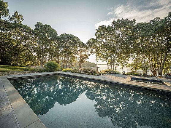 Stone fireplaceWaterfront estateResort-style swimming poolSitting roomWell-appointed family roomExquisite craftsmanshipFormal dining room