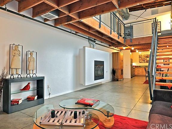 New York Style Loft Living in Downtown Long Beach. Welcome to the Courtyard Lofts, a 2009 AIA Award winning building designed by Local Architect Perkowitz & Ruth. The unit features open concept living with a stunning floating fireplace, modern kitchen with granite counter tops, polished concrete floors and in unit laundry. The upper loft space is accessed by an amazing steel and wood stair which leads to a large open area, perfect for a home office, study or guest bedroom. The other side of the upper area is perfect for the main bedroom. There is an adjoining private balcony off this room. The bathroom is sleek and modern following the industrial style of the space. There is also a walk in closet. Unit Mailing address is 835, that is what is on the door.