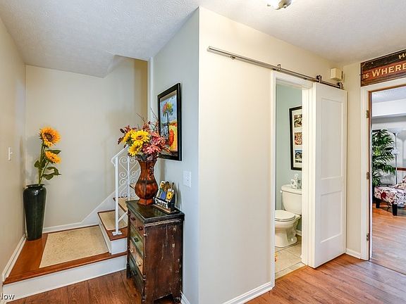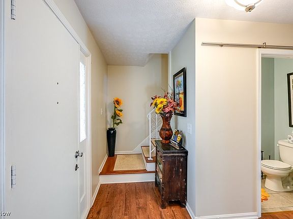 The whole package awaits in this updated, impeccably-kept Colonial on a luscious, maturely treed half acre lot. The story starts with a welcoming partial brick exterior complemented by a tidy landscape and a nature-rich atmosphere. Immediately you’ll notice the newer driveway and roof which set the stage for the evident care and pride of ownership that this home exudes! Inside you are greeted by fresh, neutral paints, gleaming Mohawk laminate floors and an overall sunny disposition! The living room is brightened by a nice picture window and opens to the beautiful dining room that overlooks the greenery of the rear yard. Just off the kitchen, this flow will serve you well as you serve your guests! Nice cabinetry and updated appliances equip this cook’s delight while a warm floor-to-ceiling brick fireplace adds atmosphere to the open family room with plenty of space for a casual dinette. Sliders to the recently refinished deck give way to your fantastic backyard where you’ll host with the most for years to come! The recently added storage shed remains and is a great bonus for seasonal overflow. The handy half-bath with a trending barn door rounds out the main level. Upstairs, both full baths have been tastefully renovated with all the right finishes, one designed to share among two bedrooms a primary en suite that boasts a walk-in closet with a custom organization system. Expanded opportunity to spread out and enjoy is just downstairs where you have a built-in bar along with your rec room! All of this and you’re not far from 77 to get you anywhere fast! The only thing missing is you!