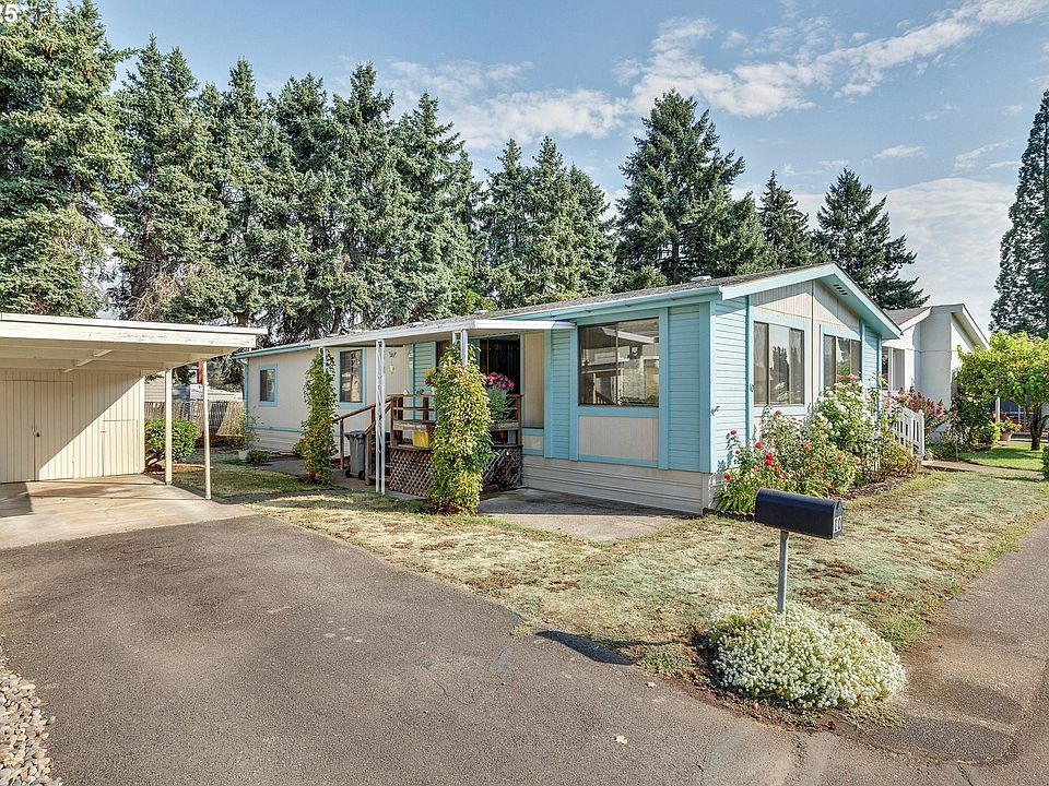 Wonderful Double-Wide Manufactured Home in 55+ Community – Prime Canby Location! Light and bright manufactured home, ideally situated in a super convenient Canby neighborhood for residents aged 55 and over. Enjoy easy access to shopping, dining, and all the amenities you need just minutes away. Step inside to an open living and dining area featuring vaulted ceilings and an abundance of windows that flood the space with natural light. The kitchen includes an eating bar—perfect for casual meals or entertaining guests. This home offers 2 spacious bedrooms, including a primary suite with a walk-in closet and an en-suite bathroom featuring double sinks and a relaxing garden tub. The dedicated laundry room offers additional storage for your convenience. Stay comfortable year-round with a heat pump and central AC. Additional updates include all-new plumbing installed in 2008. Don’t miss out on this move-in-ready gem in a desirable 55+ community!