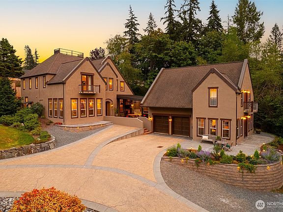 Remarkable Custom Tuscan Tudor-style estate with European elegance and convenience to everything Bellingham offers. Soaring 12’ ceilings, radiant-heated concrete floors, and expansive indoor–outdoor living create a rare lifestyle retreat. Chef’s kitchen with oversized island, pro-grade appliances & butler’s pantry. Spa-like primary suite with fireplace & jetted bath. Juliet balconies capture morning light over the east-facing English garden & sunset ridgeline views to the west. All-season covered outdoor living area includes heaters, built-in gas grill & room for large gatherings. Detached two-car garage plus two fully furnished ADUs for multi-generational living, guests, or income. Bonuses: Private movie loft, dog run & crows nest!