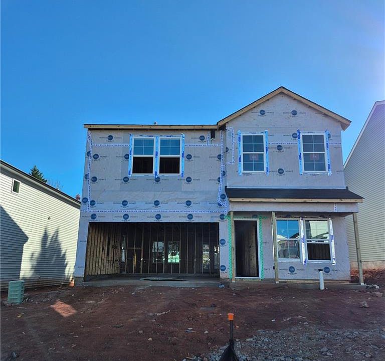 Lot 66 Lancaster Plan includes 4 bedrooms and 2 full bathrooms and a powder room. Upstairs, the primary bedroom offers a large bathroom that features a five foot shower, double sinks with quartz countertops, a linen closet, and a huge walk-in closet. The oversized laundry room is conveniently located just outside the primary bedroom. The main level features an office with double glass doors that can be used for an office, dining room, or whatever you desire. A spacious family room opens to the eat in kitchen area. The kitchen has granite countertops, white cabinets, a stainless gas range and a large island. Black gutters and black shutters . The rear patio is ideal for entertaining and the yard includes sod, irrigation and a gas tankless water heater. Rendering may vary.