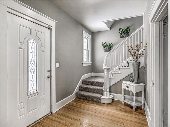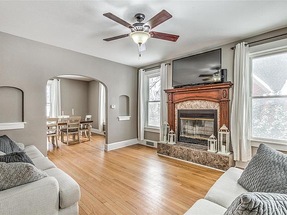 Charming, renovated home within walking distance to Haskell Park! This move in ready home has a large covered porch leading to an inviting entry way with open staircase to the upper level. The living room has refinished wood flooring and a stately fireplace. A separate dining room is accessible to the kitchen and living rooms. The large kitchen space has plenty of room for another table or to add an island. A sun porch area off the kitchen would be the perfect spot for an office space if you are working from home. Upstairs are 3 bedrooms , another bathroom and a bonus room that could work as a sitting room, small office space or large walk in closet. Other features include stainless kitchen appliances, main floor laundry, a detached one car garage, full unfinished basement and a fenced backyard!