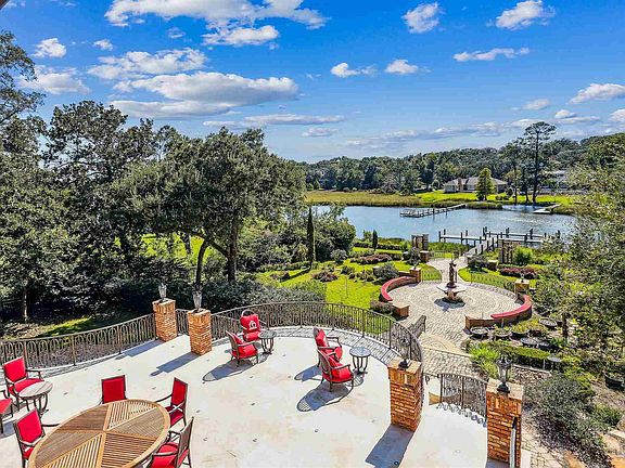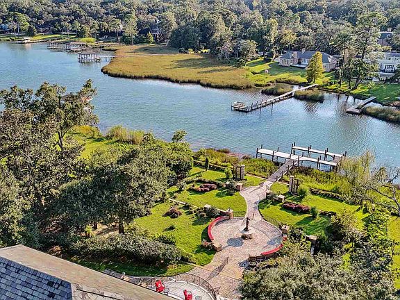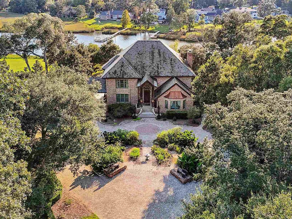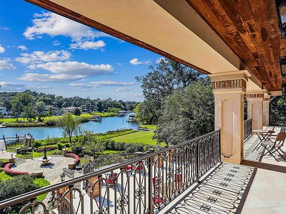 Introducing Timeless Tanglewood, a European-inspired architectural masterpiece set on 1.2 meticulously manicured acres with 125 feet of pristine waterfront along Bayou Texar. Own a part of the Fred Levin legacy with this exceptional, fully fenced and privately gated estate, masterfully redefined in 2014 by a renowned New York architect. Step inside the soaring 20-foot cathedral foyer, illuminated by a grand Palladian crystal chandelier and framed by a sweeping floating staircase—setting the tone for unparalleled elegance. Extraordinary craftsmanship defines the home. From flawlessly inlaid marble and granite floors to stunning leaded glass windows, intricately carved archways, and opulent, hand-selected silk wall coverings. The formal dining salon, anchored by a hand-carved Italian marble fireplace, opens seamlessly to a grand terrace with breathtaking views of lush gardens and tranquil waters. The gourmet kitchen is a chef’s dream, featuring a professional 12-burner gas range, hammered copper cabinetry, a Black Walnut island, natural stone floors, granite waterfall-edge counters, and a pearled glass tile backsplash. Unique spaces abound: a refined music room, a dramatic gentlemen’s armory, and a serene guest suite—each adorned with museum-quality finishes, hand-painted ceilings, and sparkling crystal chandeliers. Upstairs, the 700-square-foot Victorian-inspired master suite offers a private retreat with ornate crown molding, hardwood floors, and a spa-like ensuite bath. A stately library and additional guest quarters complete the upper level. The lower level is designed for unforgettable entertaining. The famed “Titanic Room” banquet hall features a full bar and adjoining lounges—perfect for grand celebrations or intimate gatherings. 835 Tanglewood Drive is more than a home—it’s a legacy. A sanctuary of architectural heritage and refined living, offering a once-in-a-lifetime opportunity to own one of Pensacola’s most iconic estates on Bayou Texar.
