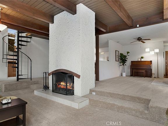 EXPANSIVE CORNER LOT HOME WITH ADU POTENTIAL & A SECOND DRIVEWAY! This expansive property features 4 bedrooms, 2.5 bathrooms and approximately 2,200 sq. ft. of living space. What makes this home unique is a spiral staircase that leads to the upstairs primary suite with a private patio, large bedroom with an office space and a large bathroom with a walk-in closet and walk-in upgraded glass shower. The living room features a cozy stone fireplace with plenty of windows that let in natural light. The kitchen leads to the dining room and also offers additional bar seating. The remaining bedrooms can be found down the hall, along with a full bath and a half bath. Additional highlights include a 2-car garage with an electric car plug-in, large driveway, recessed lighting, brand new interior carpet, and RV Parking/access. The oversized backyard has great ADU potential, set up with its own driveway/access. Other highlights include large grass areas, a gated dog run, covered patio, storage sheds and a “clubhouse” with full electrical. Centrally located just a short drive to Downtown Brea with many shopping, dining, and entertainment options as well as an elementary school and a private school. Arovista Park is also a short walk away as well as the plaza with more dining options! This Brea home is one you won’t want to miss!