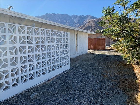 Mid Century modern home built in 1960 with back yard views that will truly stop you in your tracks. From this homes back yard you are staring right into the Palm Springs Arial Tramways lower station. From here every day the sun sets a little early as you will be within the shadow of the San Jacinto's 11,000 foot peak. Two other homes within this small community have recently been renovated and sold so be sure to take a look at the most recent sales. Possibly the last affordable investment spot in the Palm Springs area.