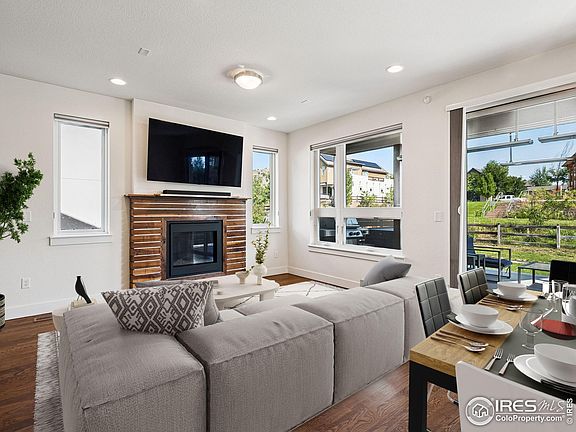 Step into the heart of North Boulder living with this sleek and sophisticated 4-bed, 4-bath residence in Trail Crossing. Designed with a modern urban aesthetic and custom features throughout, this 2,982 sqft home impresses at every turn. An open floor plan welcomes you with natural light, a dramatic slatted wood accent wall, and a show stopping kitchen featuring quartz countertops, stainless steel appliances, a glass backsplash, oversized island, and contemporary lighting.The main living area flows effortlessly, centered around a custom fireplace -perfect for cozy evenings or chic entertaining. Upstairs, a luxurious primary suite offers a private retreat with spa-like bath, oversized shower, soaking tub, sitting area, and direct access to a private deck and hot tub with breathtaking Foothills views.A flexible non-conforming bedroom on this level doubles as a home office, creative space, or yoga studio. The finished basement features a full bar, recreation area, guest bedroom, and full bath-ideal for hosting or relaxing.Outside, enjoy a spacious backyard with a covered patio, built-in heaters, and a raised fire pit area-all backing to private open space and a neighborhood park. Additional highlights include a main-level office/guest suite with Murphy bed and attached 3/4 bath, and an oversized 2-car attached garage.With direct access to NOBO's best restaurants, shops, and trails, this home effortlessly blends style, function, and location. Welcome to your perfect Boulder lifestyle.