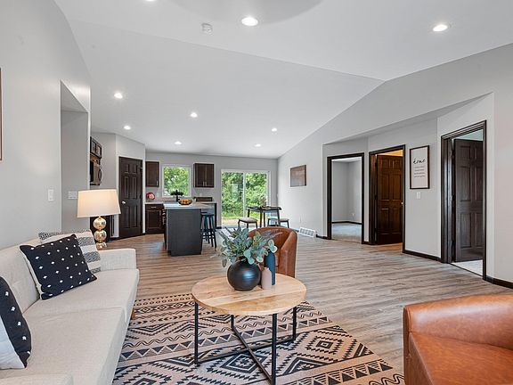 Welcome home to this split-bed ranch on a beautiful Winchester lot by Wildflower Development Group! This Foxglove floorpan is an open concept home that features an efficient split-bed layout, LVP flooring (carpet ONLY in bedrooms), an electric fireplace, and a beautiful vaulted ceiling in the kitchen and living area. The kitchen offers quality maple soft close cabinets, a large island, a gas hookup, and spacious pantry. This home features a large primary bedroom with an attached bath and huge closet space that flows right into the 1st floor laundry. This home with an egress and is stubbed for plumbing in the basement - ready for expansion! 16x20 patio and seeded lawn included! Photos shown are of computer generated images and photos of similar homes. Home is under construction.