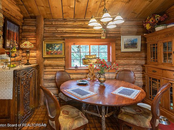 Falcon's Rest is a one-of-a-kind property which includes unique cliffs, panoramic views and unmatched beauty for the wildlife enthusiast; all with privacy and stress-free access just minutes from Jackson. Enjoy views of Glory Peak, Teton Pass and Munger Mountain in a wildlife migration route frequented by wintering herds of elk and mule deer. The quiet road follows the Snake River encouraging fly-fishing in the morning mist or endless hiking, horse-back riding or mountain biking on trails out your front door! The residence is the historic Three River's Ranch Cabin. This charming 2 bedroom, 944 sq ft log cabin was built in 1931 by one of the founders of Grand Teton National Park. It was moved from Pacific Creek in Moran in 1981.