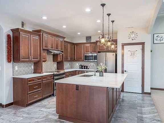 MLS#271924 Introducing Sagebrush Chateau, where you can experience a new level of luxury in multi-generational living. Nestled in the highly-coveted Summit View neighborhood and boasting a spacious 0.66-acre lot, this property is the definition of versatility, featuring enough space for a shop and pool. With 5 bedrooms, 4 full baths, and an insulated 4-car garage, this stunning 1-story masterpiece spans over 2810 sq. ft. The open floor plan flaunts majestic 9 and 12 ft high ceilings, split bedrooms for maximum privacy, and ample storage. The gourmet chef's kitchen features top-of-the-line GE stainless steel appliances, a plethora of cabinetry, and an impressive center island perfect for entertaining guests. Experience ultimate relaxation in the oversized master suite with a spacious walk-in closet and a lavish custom shower complete with seating. Need even more space? Look no further than the multi-generational living quarters featuring a private bathroom, sliding door to the covered patio, and potential use as a second master or entertainment/game room. Step into a world of timeless elegance with impeccable quality finishes throughout the home, including granite and quartz countertops, custom window treatments, and speakers for surround sound. Spend your evenings unwinding in the tranquil covered outdoor entertainment area with not just one, but two covered patios. Admire the professionally landscaped yard with block fencing and custom-made gates that elevate the home's already striking appeal. Experience the pinnacle of luxurious living with this move-in-ready, one-of-a-kind masterpiece - the perfect sanctuary for all generations to relish in. Don't miss out on the chance to call this extraordinary property your forever home.
