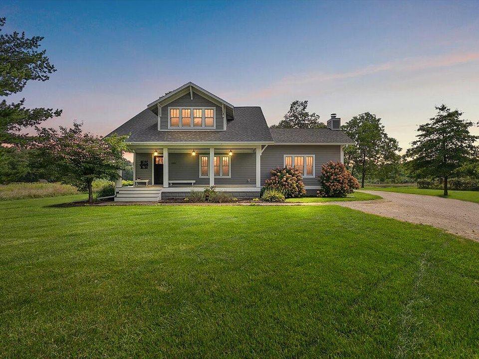 NEW PRICE! Luxury living in wine country on an amazing 18-acre setting provides a way of life most dream about. Restored to perfection in 2016 capturing the beauty of a 100-year-old Craftsman farmhouse with today's conveniences. The interior is all about simple lines, sleek finishes, lots of windows, gleaming wood floors that deliver a smooth comfortable floor plan. Nicely appointed chef's kitchen with an oversized island is the definition of functional luxury that flows into the dining room and great room with an impressive vaulted ceiling and fireplace. First floor includes a spacious primary suite, powder room, laundry room and mudroom. Upper level provides 3 additional bedrooms each with walk-in closets and a full bath. Boasting 4 bedrooms, 2.5 baths and 2,800 SQFT of living space. Unfinished basement offers optional bedroom or bonus space. Exterior living is enhanced with a nice size patio, fire pit, hot tub and an awesome setting. Seller is a licensed Realtor. Now add a 100 year old barn with workshop, garage, a pond / swimming hole stocked with fish and trails throughout the property filled with grapes, blueberries, woods, hayfield and wandering stream. House has been used as a STR and has rental history. Furniture and farm equipment can be purchased separately. Bridgman schools and located close to all local amenities, wine country, Lake Michigan and more.