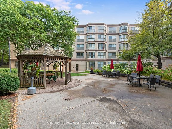 Turn the key to stylish boutique style living! This renovated, freshly painted 1+1 corner suite delivers extra windows, airy flow, and a serene garden-view den - ideal as a bright home office or potential 2nd bedroom. Enjoy a new quartz kitchen with brand-new, new stainless steel appliances, an updated bathroom, and new washer/dryer. Includes in-suite laundry, underground parking, and exclusive-use locker. Well-kept building with superb amenities: indoor pool, hot tub, library, fitness & exercise rooms, games & meeting rooms, BBQ area, garden & gazebo, and 3 guest suites. All-inclusive maintenance fees. Unbeatable convenience-bus stop at the entrance, steps to Steeles Ave shopping, Sheridan College, and transit, with quick access to Hwy 410/407. Rarely available corner layout-move-in ready and impressive.