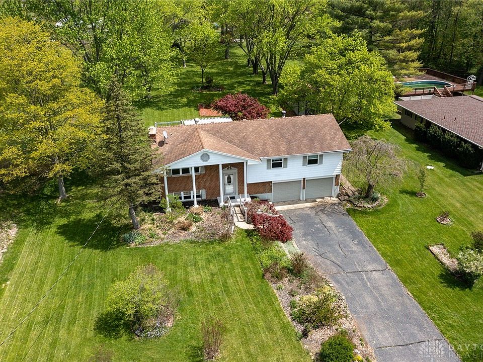 This is your chance! Brick bilevel on almost and acre. The main level is highlighted by the remodeled kitchen, featuring quartz countertops, all new cabinets, and stainless steel appliances. The rest of the home is ready for you to customize and make your own. Dining room, living room, full hall bathroom, primary bedroom with adjoining bahroom, and 2 additional bedrooms. Lower level has large family room with brick fireplace, spacious laundry room and half bathroom. The real show stopper is the backyard. Enjoy the partially covered deck, run around with the kids in the yard, or enjoy some gardening. Whole house fan.Windows approx 6 years old