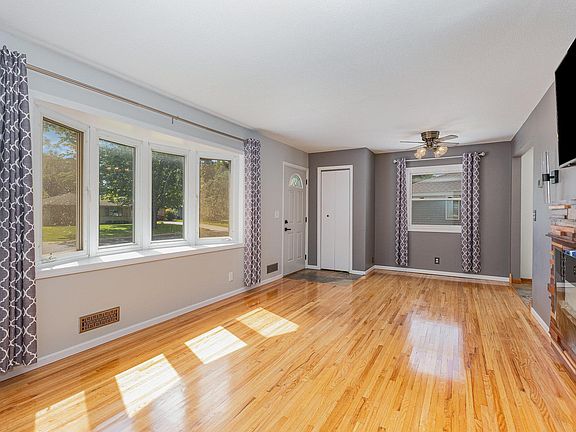 UPDATES ABOUND! Inside and out of this beautiful rambler-Main floor boasts fresh paint, the LR w/built fire art, mounted TV & Speaker- Stunning Hardwood floors- 3 bedrooms, all w/ceiling fans-Updated Full Bath hanging items stay, has access panel to hall closet-Kitchen/Dining addition w/snack bar, all appliances, vaulted ceiling and hardwood floors. LL has newer carpet, FR, Wet bar w/frig, built in shelves, large room below KT addition, 4th BR and 3/4 bath. Open laundry room, washer/dryer stay. Enjoy the fabulous .386 acre fully fenced yard, firepit, flowering trees, deck and concrete patio! Oversized Detached garage includes, GDO, drive through to back yard, extra storage room in back and no maint. extra wide concrete driveway! Gorgeous exterior of the home updated with stone accents & no maint. vinyl. Water Softener stays-also included is a water filtration system is connected to faucets and the ice . Move in and enjoy-WELCOME HOME!!!