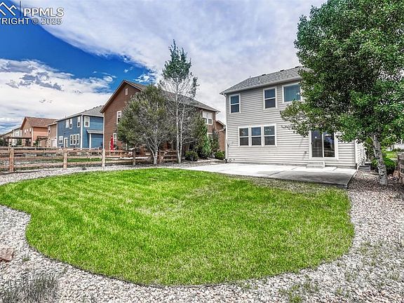 Move-in ready 4-bed, 3-bath home in desirable Wolf Ranch! Recent upgrades include new roof, gutters, window screens, interior paint, flooring, and faux wood blinds. Bright kitchen with eat-in space, family room with fireplace, and primary suite with walk-in closet & 5-piece bath. Mountain views from the back and yard! Extended 2-car garage, sprinklers front & back, washer/dryer included. Low HOA, near parks, community pool & Ford Amphitheater. Quick close available!
