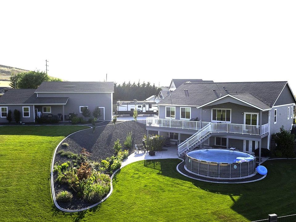MLS# 277010 County-permitted and approved additional 792 sq ft detached dwelling! Check out this attractive craftsman-style, 1-story/basement home situated on a 1.5 acre lot with view of Badger Mountain. The entryway has a covered front porch. The entry foyer separates the guest bedroom and formal living room. Guest full bathroom is directly adjacent to guest bedroom. Down the entry hallway is the kitchen and great room. The kitchen has breakfast bar elevated for stool seating, full tile backsplash, quartz counters, undermount sink, stainless steel appliances, and a large walk-in pantry. The dining room is situated next to the kitchen with access to the covered patio. The great room has a gas fireplace and is open to the kitchen and dining room. The master bedroom is located on the main level and is spacious (15’x20’). The master bath suite features a soaking tub, shower, private toilet, and walk-in closet. The laundry room is located on the main level with access to the three-car attached garage. Downstairs is fully tiled for all living space. All 3 downstairs bedrooms are oversized. There is one full bathroom and a jack-and-jill bathroom between two bedrooms. French door opens to the patio under the deck and is set up for a hot tub. The above ground pool is set on a large patio. The stairs lead up to a large deck of which 25x10 is covered. The yard is fully enclosed with block and wrought-iron fencing. The 35x40 shop is located just past the iron gate. The sidewalk to the left leads to a covered patio and slider entrance into the apartment. The apartment has two exterior doors and one door into the shop. The shop could be used as an attached garage for the apartment. The apartment has 9-ft ceilings, quartz counters, stained wood cabinets, tile shower, personal laundry, large windows with amazing views. Just above the apartment is a playground and garden area with a large storage shed. The garden features raised beds with timed drip-lines throughout. Call your agent to set up a showing today!