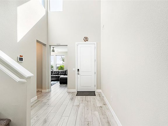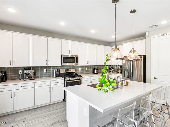 Welcome to this beautifully upgraded home in the heart of Skye Canyon, where simplicity meets sophistication. Thoughtfully designed with modern finishes throughout. This home offers comfort, style, and functionality in every corner. The chef’s kitchen features a sleek quartz island, upgraded cabinetry, and stainless steel appliances, seamlessly flowing into the open-concept dining and living area. A flexible downstairs den/office provides the ideal space for remote work or a cozy retreat. Upstairs, is a spacious primary suite with a spa-inspired bathroom, along with two generously sized secondary bedrooms offering ample space. Step outside to your private oasis—an artfully landscaped backyard designed for tranquility and relaxation. Highly sought-after Skye Canyon community, residents enjoy access to resort-style amenities including pools, parks, fitness centers, sports courts, and more. This home truly has it all—modern upgrades, functional spaces, and a lifestyle you’ll love.