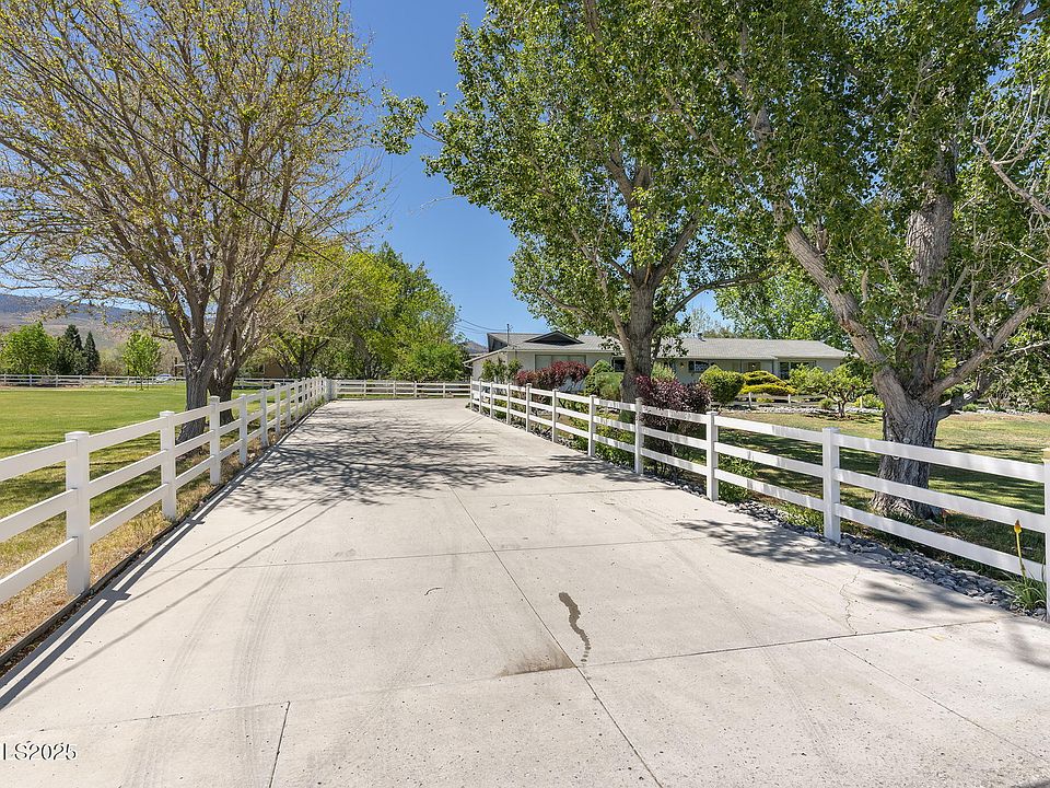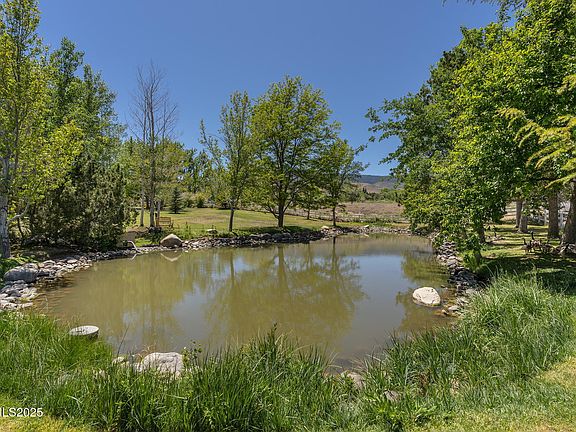 Beautifully maintained inside and out, this exceptional property is located in one of Reno's most sought-after neighborhoods—SW Reno Ranches. Known for its upscale, country lifestyle, this community features spacious homes on 2+ acre parcels, lush green pastures, and a tranquil, rural feel just minutes from town. Situated on 2.5 fully fenced acres, the property includes irrigated pastures, two ponds, a rose garden, fruit trees, and expansive outdoor space to relax or entertain. The main living area offers 2,696 sq. ft. with 3 bedrooms and 2.5 baths, including a spacious primary suite. The formal living and dining rooms flow into a warm, inviting family room with a wood-burning fireplace. The open-concept kitchen features sunlit windows overlooking the pastures, a large breakfast nook, lighted walk-in pantry, and appliances suited to any home chef. The fully finished 1,122 sq. ft. basement provides flexible living space, complete with a recreation area, bedroom, study, and full bath—ideal for guests, multi-generational living, or a private home office setup. A rare opportunity to own a truly special home in a prestigious and peaceful setting.