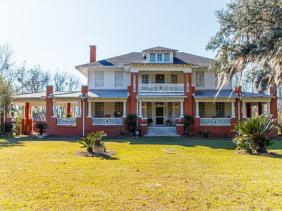 The Millrock Estate is a ONE-OF-A-KIND 1908 craftsman-style home perfectly nestled on 40+ ACRES, an additional parcel of 125 acres is included. STUNNING white wrap-around porch, elegant grand foyer staircase, and second-story balcony overlooking the hundred-year-old live oak trees. Comes complete with almost all original pieces, including imported Honduran mahogany wood floors, imported Spanish tile, original fixtures, and uniquely designed fireplace mantels in each room. Kitchen comes equipped with a double oven gas range, tile countertops, stainless steel appliances, walk-in pantry, and separate butler's pantry. Includes a wired barn, garden, greenhouse, 9 bird dog pens, established shooting range+ much more! Orchards of pecan, fig, mayhaw, banana, lemon, pear, and persimmon surround the property's captivating grounds. WOW is an understatement! This is a MUST-SEE!