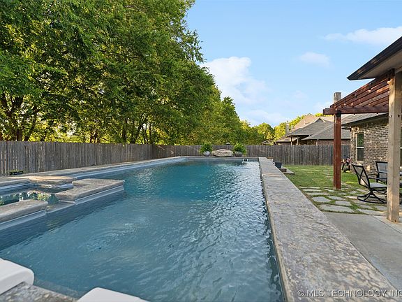 You won't believe your eyes!! This Fabulous 4 bedroom /2.5 bath has Game Room/Media Room, Pool, Hot Tub and Outdoor Kitchen!!! In the highly desirable neighborhood of Willow Gorge in Verdigris. Welcome Home to this stunning single-story home featuring spacious bedrooms and modern bathrooms, perfect for comfortable living. This property combines luxury, functionality and relaxation all in one in your own personal resort. As you enter, you are greeted by an open concept layout that flows seamlessly from the living room with Fireplace and concrete floors to the gourmet kitchen with granite, travertine/glass tile backsplash, under cabinet lighting and a built-in bar. Gas Range, Stainless Steel Appliances and Pendant lighting over the Oversized Island. The Flex room could be used as a Game/Media/Exercise or Office. Step outside to your private backyard oasis, perfect for entertaining guests in the outdoor kitchen and relaxing evenings. Fall in love with this one today!