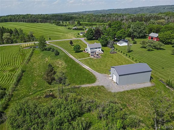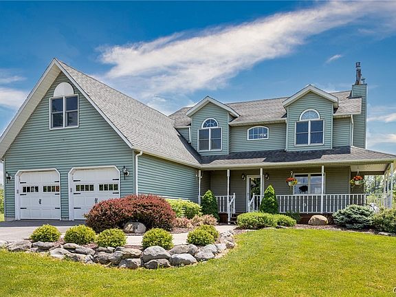 Nestled on a lush 5-acre lot, this stunning Colonial home offers the perfect blend of country charm and modern comfort. Enjoy the peace and tranquility of this spacious home in the sought after F-M School District with the convenience of proximity to the Village. The kitchen boasts granite countertops and an open floor plan which transitions to the dining room with French doors opening onto the deck. The large living room includes a gas fireplace and sliding door to the screened porch. The primary suite boasts vaulted ceilings, large windows with plenty of natural light, and 2 separate walk-in closets. The spacious ensuite bath features dual vanities. 2nd floor laundry provides convenience and efficiency. A bonus room with its own heating system and full basement offers so many options. Outside, enjoy an open country front porch overlooking a private pond, or relax on your back deck, screened-in room or concrete stamped patio with hot tub and fire pit. There is also a newly built 2300 sf fully insulated and heated pole barn with separate drive, 20 ft ceilings & 14’ overhead door & 1000 sf enclosed mezzanine.