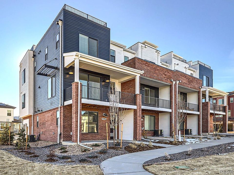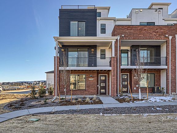 Welcome to this exquisite 3-story END UNIT townhome with ROOFTOP DECK located in the desirable Prospect Village at Sterling!  This home offers a perfect blend of luxury and modern amenities, ensuring a lifestyle of comfort and sophistication. Enjoy breathtaking views and outdoor entertaining on your private rooftop deck, perfect for relaxing or hosting gatherings. The heart of this home is its luxury kitchen, featuring all Whirlpool appliances with a gas cooktop, 42” white cabinets, and pristine quartz countertops. Designed for both style and functionality, this kitchen is a chef’s dream. Cozy up in the spacious living area featuring an elegant electric fireplace, adding warmth and ambiance to your home. This townhome boasts a contemporary open floor plan with high ceilings, abundant natural light, and premium finishes throughout. With three levels of living space, this home provides ample room for multiple bedrooms, bathrooms, and versatile living areas to suit your lifestyle needs. Located in the vibrant Prospect Village at Sterling Ranch, this townhome offers easy access to community amenities, parks, and trails. Experience the best of luxury living in a prime location. Schedule your showing today and make this stunning townhome your own!