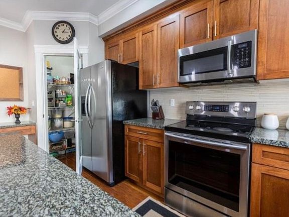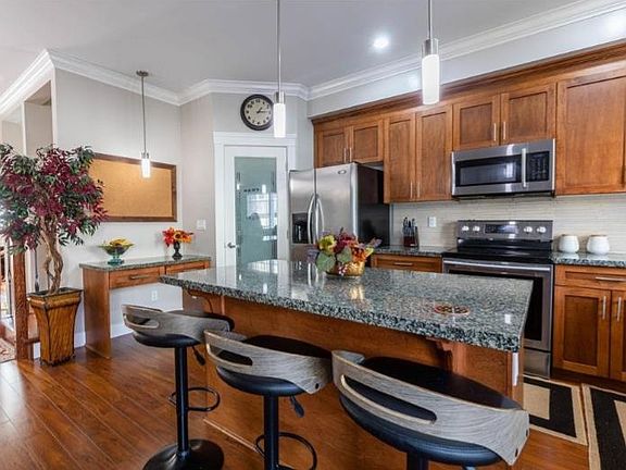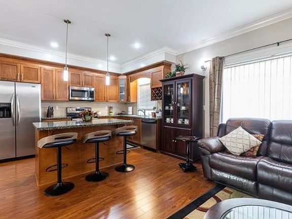 Beautiful half duplex in the Kennedy Trail Townhome Complex! This home features 2300 sq ft + of living space with 4 parking spots & 5 bedrooms! 3 bedrooms upstairs with a flex room on the main floor that can be used as a bedroom or an office! Large open concept kitchen with island and a pantry! 2 spacious living rooms with 2 large balconies. Downstairs features a massive bedroom with living space with their own separate entrance or can have a guest suite for entertainment or if approved by strata can have a studio to rent! Geothermal heating and cooling system with double side-by-side garage and large driveway with 2 extra parking. Best of all a massive backyard space for pets and kids fully fenced and private. Bus stop steps away, close to Scott Road Shopping, Temples, Schools!