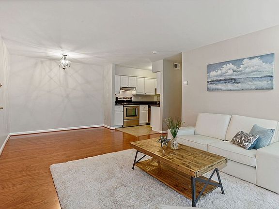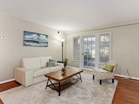 Gorgeous 2 bedroom 1 bath condo with private outdoor patio in sought-after Cardinal Forest neighborhood. This ground floor unit can be accessed from private exterior entrance, so no need to walk through interior common areas. Beautiful hardwood floors throughout the open concept living and dining room. The spacious kitchen includes granite countertops, stainless steel appliances, and like-new white cabinetry. Both bedrooms are generously sized and offer quiet views. No need for shared laundry, as this unit has a washer/dryer combo, great for saving both time and space. Primary bedroom has huge walk in closet that provides access to the bathroom. Bathroom has two vanities separated by a door which makes it function similar to a 1.5 bath home. Entire unit was recently painted in a modern, neutral palette. This unit has one assigned parking space (#627) but offers ample non-reserved spaces. The small condo fee includes gas, sewer, trash and water.