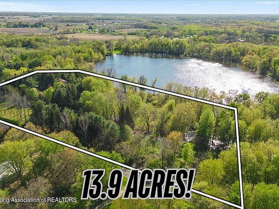 ALWARD LAKE WATERFRONT + 13.9 ACRES!!!! SUPER RARE Opportunity to own this custom built walkout ranch home ON beautiful Alward Lake sitting on an absolute stunning 13.9 acre piece of property filled with mature trees, walking trails, apple trees, outbuilding, and the most beautiful lake views! With the most serene and peaceful setting, this custom built ranch features over 2500 square feet of living space with an open floor plan that accentuates the water views from almost every room! The spacious living room features a large custom stone wood burning fireplace with a large mantle and the entire room is lined with windows to take advantage of every lake view. Listen to the calming waterfall feature from your private deck just off the living room. The kitchen is functional with plenty of cabinet space and an eat-in breakfast nook. The main level primary bedroom suite is in the back of the home with an attached ensuite bath with soaking tub and walk in shower. There is an additional flex room on the main level that would make a perfect office, dining room or even bedroom if desired with one of the best views in the house. The finished walkout lower level features brand new carpet and a large family room with fireplace, and SO many windows to soak in the views! Great living space with an additional two spacious bedrooms with amazing views plus another full bath! Enjoy the views from the three season deck, just off the family room! The outside is just absolute paradise, as you can enjoy the lake with your very own dock and walking trails that surround this nearly 14 acres of property! There is a workshop/outbuilding on the property, perfect for storage, workshop and so much more. There is also a 2+ car garage as well with plenty of space as well as lots of storage space. The home has been well maintained, and updates include: New roof & Gutters (2021), new furnace (2020), new carpet (2024), and so much more! Homes on this kind of waterfront and acreage RARELY come up, call to schedule your tour on this special property today!