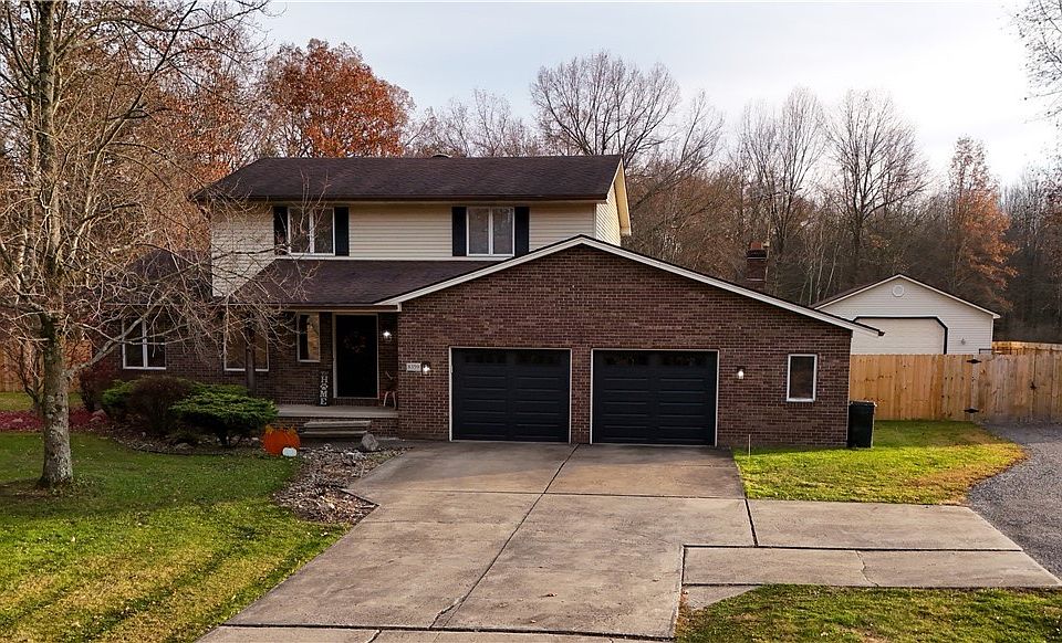 Welcome to this phenomenal updated Canfield Home on 3 acres! Your very own laid out Homestead! Fully renovated kitchen with Quartz counters! Completely New whole house electric Heat pump HVAC system with Duct work installed in 2025. New Kitchen, Floors, Bathrooms, Fence, and reverse osmosis water system all in 2025! Upon entering you will be greeted by a spacious foyer and Living room. Leading to kitchen and formal dining room. A second family room with fireplace leads to an awesome covered 24x12 Deck overlooking the back yard and woods! Main floor Laundry! Attached two car garage. This Home also features a 45x30 detached garage! The building features concrete floors, drywall, electric, propane heat, and a 9 foot garage door. Perfect for any recreational storage use, workshop, and/or entertainment! Approximately 1 acre of back yard fenced without obstructing your views of the property. Excellent fence for dogs/chickens out in the country! 2 acres of additional wooded land towards the back of property. All offered on the beautiful and tranquil Gibson road in Canfield Township. Canfield Local School District! Quick access into town and schools, also close to major interstates. Do not miss or pass on this opportunity to acquire a homestead in Canfield! Property Lines Approximate in Arial Photo*