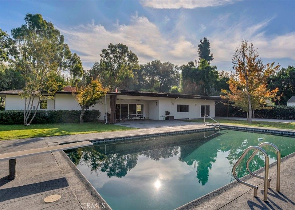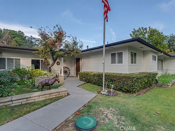 Behind private gates & nestled on nearly one acre of lush, tree-filled grounds, this distinguished 4-bedroom, 2.5-bath Northridge residence embodies the warmth, character, & tranquility of a true California estate. A deep setback from the street & long gated drive create a grand approach, with generous parking that includes a 2-car attached garage, 4-car carport, & expansive RV access. At the heart of the home, a serene front courtyard framed by vibrant landscaping welcomes you inside to nearly 3,200 sq ft of light-filled living space. Step down to the impressive main living area featuring dramatic open-beam ceilings, a statement fireplace with raised hearth, & custom built-ins, while walls of glass open to the covered patio & pool, seamlessly connecting indoor & outdoor living. A large picture window on the opposite wall showcases the front courtyard, flooding the space with natural light & creating a beautiful sense of symmetry. The adjoining family room & formal dining area with additional backyard access, & the spacious kitchen—with built-in cooktop, double ovens, & cozy breakfast nook—offer perfect flow for entertaining & everyday living. The home’s thoughtful layout continues with a powder bath for guests, a large laundry room with wall-to-wall built-in storage, & direct garage access. All bedrooms are found in the north wing of the home, including a peaceful primary suite with fireplace, ample closet space, & an ensuite bath featuring wraparound dual-sink vanity, oversized shower, & a second walk-in closet that impresses in size. Three additional bedrooms share a hall bath with separate tub & shower, each enhanced with ceiling fans & natural light. Outside, the backyard unfolds like a private park, with a covered patio featuring ceiling fans & retractable awnings, a sparkling pool with diving board, vast lawn, & a canopy of mature trees offering shade & serenity. A powerful 22 kW backup generator adds peace of mind & convenience, ensuring uninterrupted comfort year-round. The property is zoned LARA, suggesting potential for an ADU, guesthouse, or future expansion (buyers to verify). Ideally located near the Northridge Fashion Center, Porter Ranch Vineyards Shopping Center, popular dining destinations, & beautiful local parks, the home provides easy access to the 101 & 118 Freeways as well as connecting major thoroughfares, & falls within the boundaries of highly rated Napa Street Elementary & Sutter Middle School.