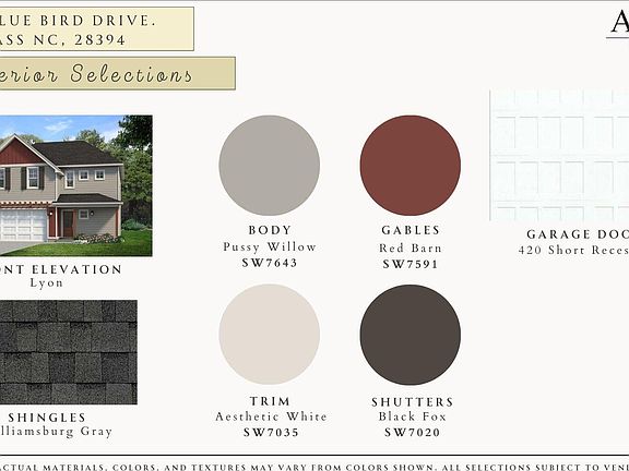 The Lyon plan presented by The Ascot Corporation offers custom finishes throughout. 836 Blue Bird is one of the larger lots located on the South Side of Woodlake. Exterior includes two car garage, hardie plank siding, energy efficient double paned windows, and covered front and back porches. As you enter the front door you are greeted with LVP flooring throughout the main living areas. The home boasts over 1,900 sqft of well designed living space. The downstairs includes an open floor plan leading from Family room, Breakfast nook, then Kitchen. Kitchen includes ample storage with soft close cabinetry, brushed nickel hardware and ceramic tile backsplash. Primary bedroom with well appointed bathroom upstairs. Three additional bedrooms located upstairs share full bathroom. The Woodlake North Side Golf Course is currently under construction and work is currently taking place to return water back to Lake Surf. Short commute to Fort Liberty, Southern Pines, Pinehurst and First Health. Woodlake Country Club Membership information has been announced! Representative Photos.