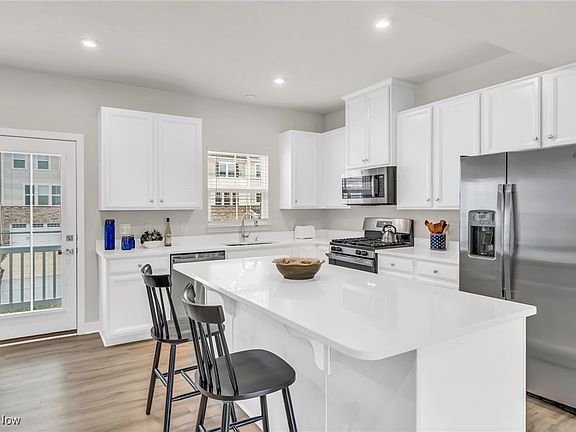 Stylish, move-in ready townhome with NO PROPERTY TAXES until 2035! Enjoy modern living just steps from the Cuyahoga Valley National Park Towpath Trail and BARC Akron Dog Park — the perfect setting for an active lifestyle. This bright and inviting home in the sought after Hickory neighborhood features 10-foot ceilings and oversized windows that fill the open floor plan with natural light. The crisp white Kitchen shines with stainless steel appliances, quartz countertops, and $15,000 in tasteful builder upgrades. Luxury vinyl plank flooring extends throughout the Main Level, which also includes a convenient Half Bath and a Flexible Nook ideal for a home office or reading space. Upstairs, the spacious Primary Suite boasts a large Walk-In Closet and a beautifully Upgraded Bath with dual sinks and premium finishes. Two additional Bedrooms and another upgraded Full Bath complete the Second Floor. The Walk-Out Lower Level provides great flex space — perfect for a treadmill, home gym, or future rec area — and opens to a yard ready for your personal touches, such as a patio or fenced-in space for pets. Enjoy a nearly new home with all the upgrades — and no property taxes until 2035! Schedule your private tour today.